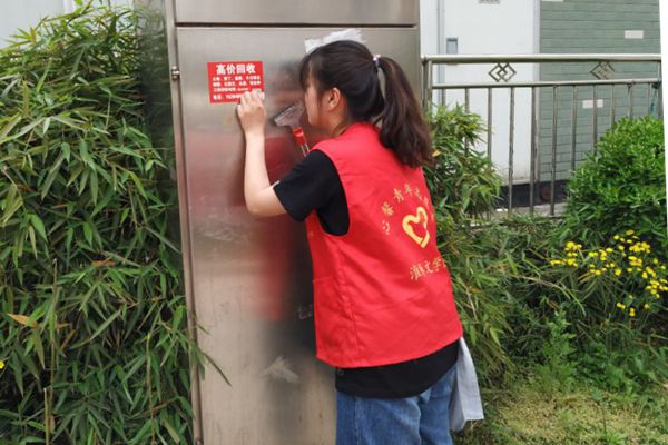 为了保证活动高效有序的进行,志愿者们根据实际情况进行合理的分工与合作。首先,志愿者们对社区内楼道、背街小巷、沿街店面墙上的小广告进行集中的清理和整治。接着,志愿者们手拿铲子针对指定区域开展全面的清理工作。经过大家的不懈努力,清理小广告行动取得了初步的成效,社区环境也得到了明显的改善。 社区里各种颜色的自行车随意的停放在街道上,有的甚至倒在地上。见到此景,志愿者们主动将自行车进行有序的排列,将靠在路边、树边的单车重新归位,居民不禁投来赞赏的目光。