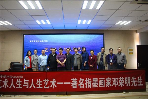 为促进学生身心发展,提高学生文化素养。4月19日下午四点,第二十九期翔宇学术沙龙“人生艺术与艺术人生”在弘文楼1-110召开。本次学术沙龙有幸邀请到中国画非物质文化遗产继承人、江苏省美协会员、华夏文艺出版社终身名誉社长邓荣明担任主讲人。77779193永利官网副院长陈年高和部分17级同学参加了此次讲座,本次沙龙由淮阴师范学院文创中心副主任赵科印主持。