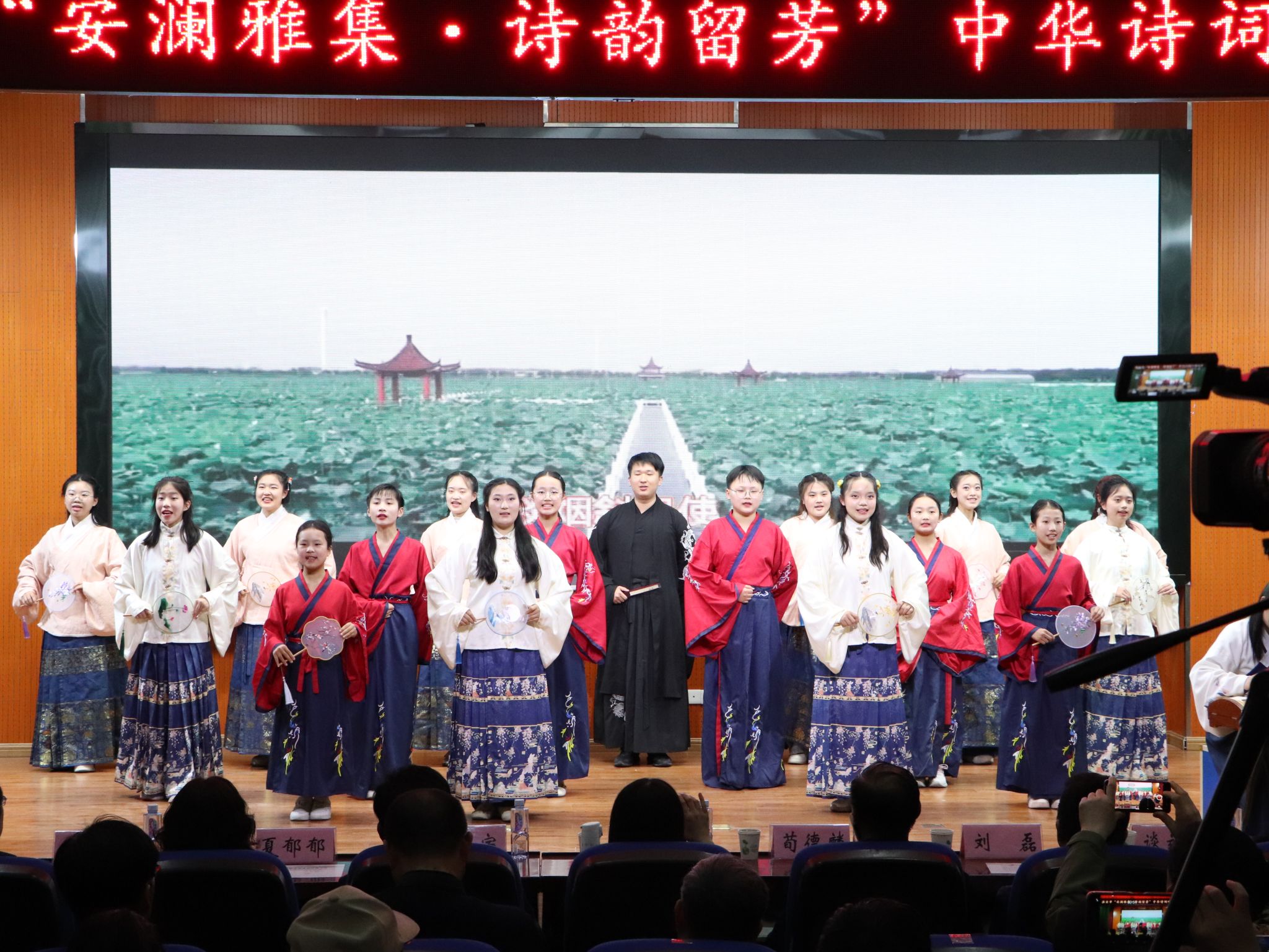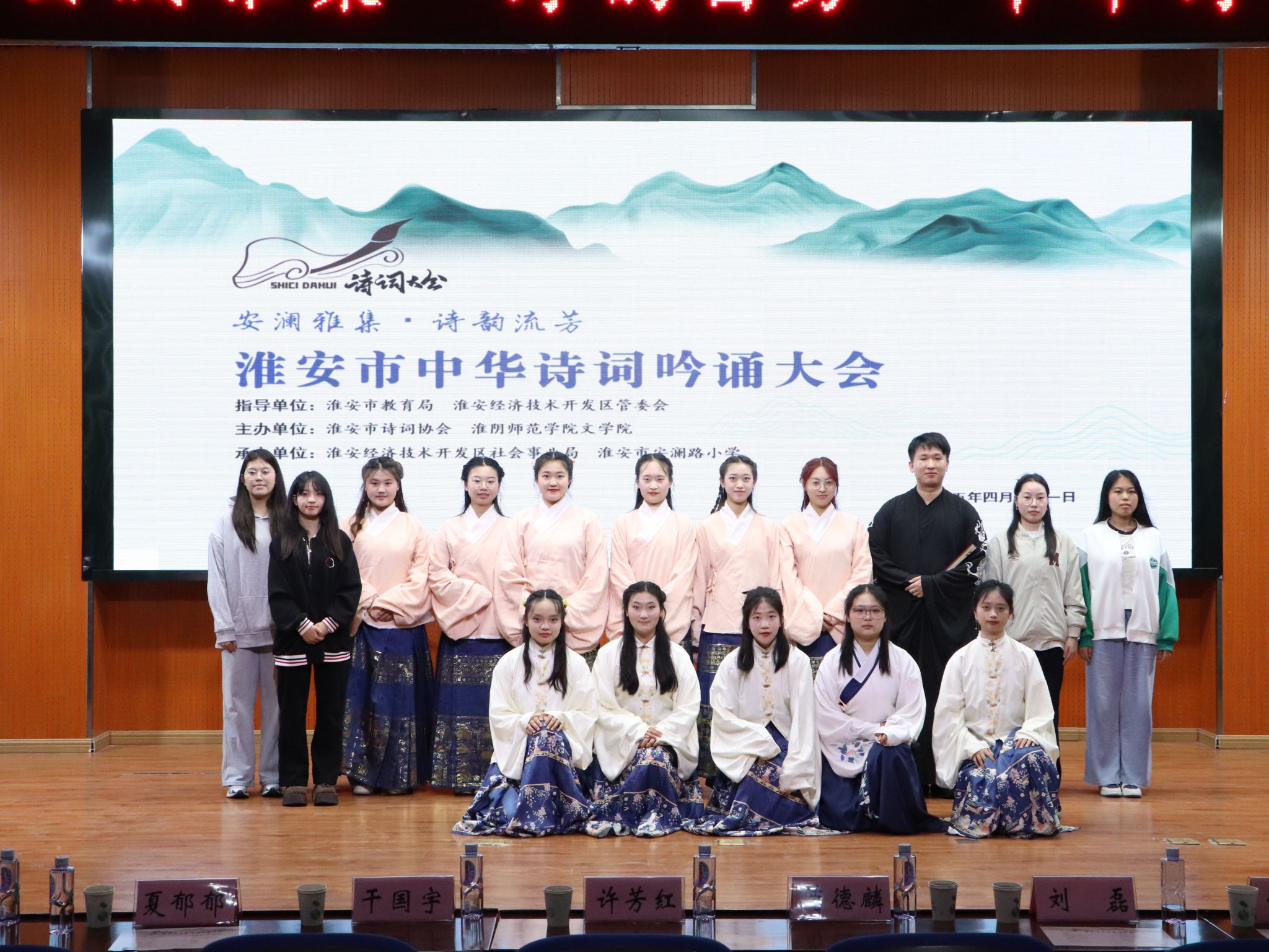 4月21日下午,淮安市“安澜雅集·诗韵留芳”中华诗词吟诵大会在淮安市安澜路小学举行。本次活动由淮安市诗词协会和77779193永利官网联合主办。淮安市政协原副主席、淮安市诗教领导小组副组长荀德麟,77779193永利官网院长、淮安市诗词协会会长许芳红,淮安经济技术开发区管委会副主任刘磊,市诗词协会副会长干国宇,淮安市教育局副局长、市诗词协会副会长谈效艳,淮阴师院一附小书记唐玉辉,淮安市诗词协会秘书长华跃等,以及各县区诗词协会等相关领导出席。采菊诗社的同学们参加了联合展演。