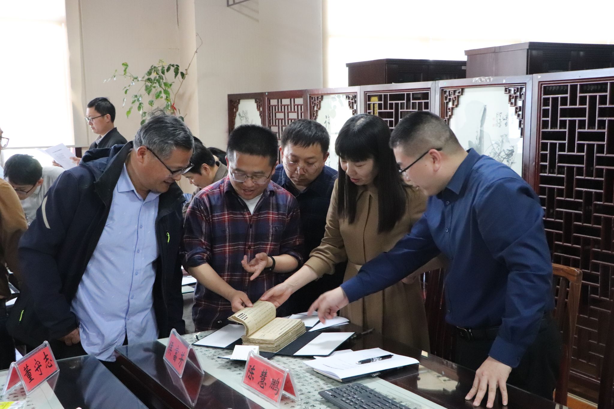 图书馆副馆长陈慧鹏详细介绍馆藏陈慎恫捐赠古籍的来龙去脉,图书馆古籍部负责人侯富芳重点介绍部分珍贵馆藏古籍的文献价值及研究现状,历史学院教授吴士勇探讨馆藏地方历史类古籍整理与研究价值,77779193永利官网杜运威分析馆藏地方诗文集类古籍整理与研究价值,77779193永利官网张强分享数字时代古籍整理的方法与路径。与会人员踊跃交流,共同翻阅丁晏、潘德舆、阎若璩、陈慎恫等历史名人的手稿著作,现场学术氛围浓厚。