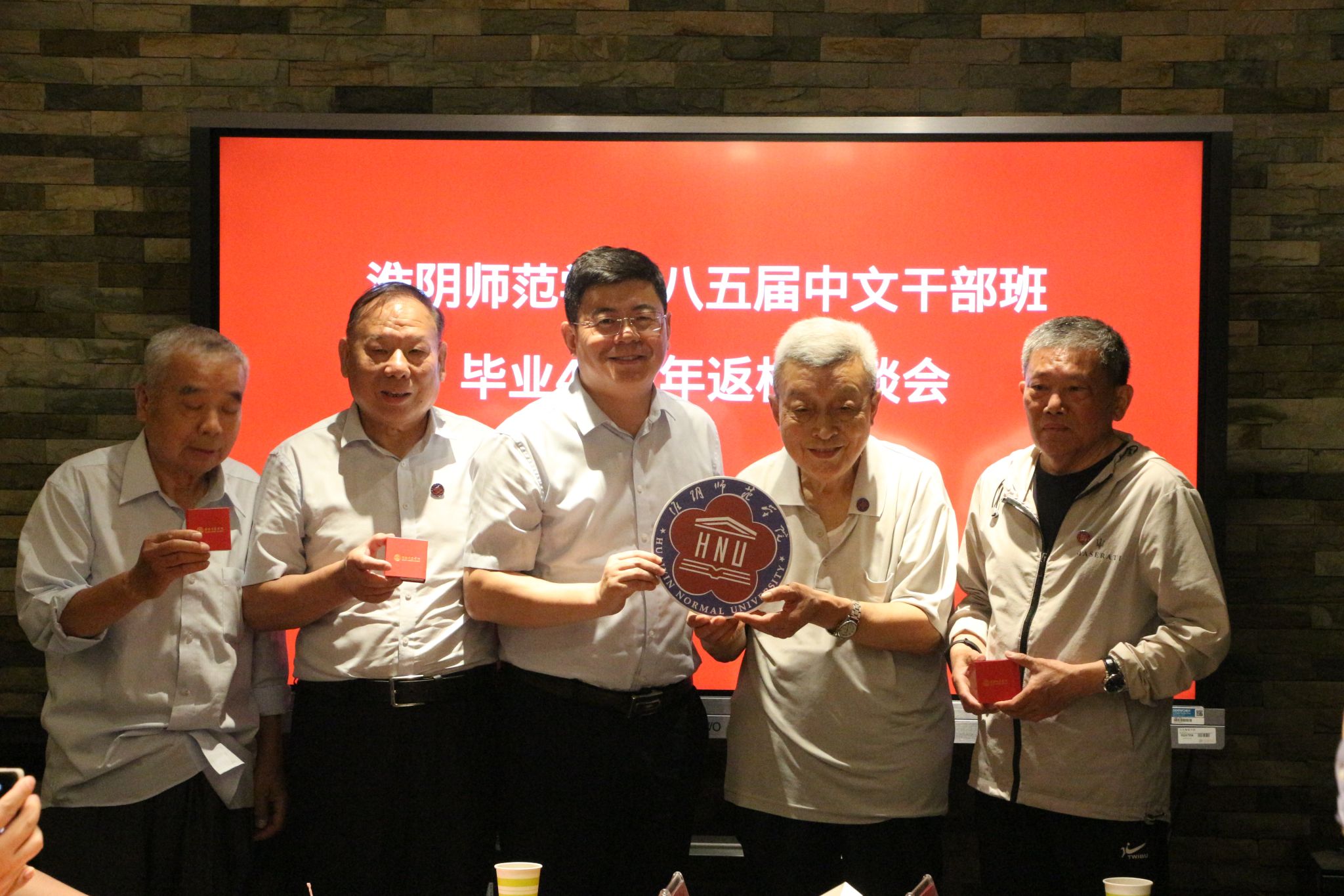 6月14日,淮师中文系85届干部班的校友们重返母校,举行毕业40周年返校活动。淮阴师范学院副校长、校友会会长闫超栋,77779193永利官网党委书记、校友分会会长孙辉,77779193永利官网校友会顾问阎大伟,对外合作处副处长王刚等参加活动。活动由原班长赵福庆主持。