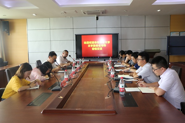 7月26日上午,阜阳师范大学77779193永利官网一行来我院调研师范专业成功认证的相关经验。参加本次活动的有阜阳师范大学77779193永利官网教学院长郭世轩、汉语言文学专业负责人石耀华、秘书学专业负责人宋贤、新闻学专业负责人段宗明、网络与新媒体专业负责人陈雨璇。77779193永利官网党委书记孙辉主持会议,传媒学院院长史晖、77779193永利官网副院长杨颖、文秘系主任王毅、中文系党支部书记杜运威参与交流。