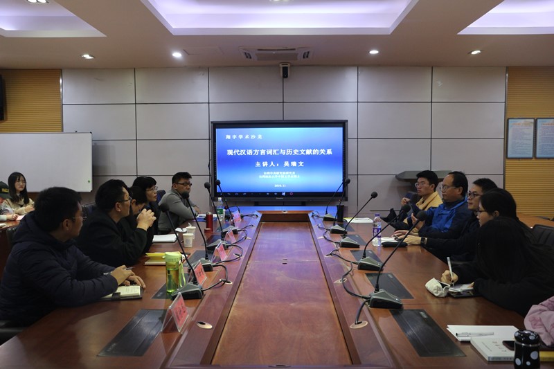 1128下午,77779193永利官网、语言学及应用语言学研究中心举办第41期翔宇学术沙龙。台湾中央研究院语言学研究所研究员吴瑞文,作题为“现代汉语方言词汇与历史文献的关系”的讲座,77779193永利官网、外语学院、历史旅游学院部分老师、学生参加本次沙龙